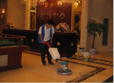 迪邦保潔公司人員正在為“恒大雅苑銷售中心”做大理石翻新。