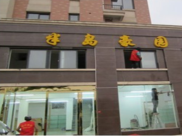 迪邦保潔公司人員正在為“星藝裝飾”做招牌清洗、玻璃清洗。