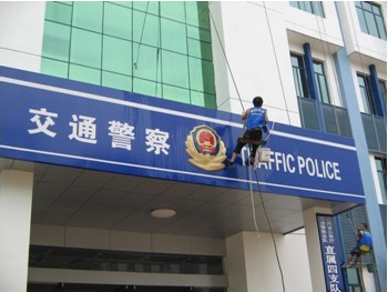 迪邦保潔公司人員正在為“交通警察”做高空外墻清洗。