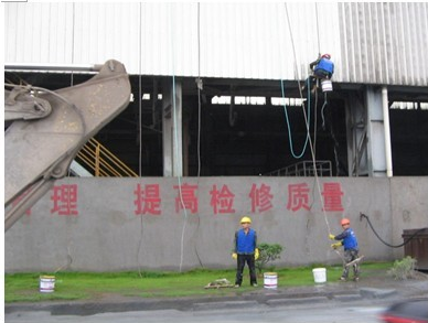 迪邦保潔公司人員正在為“新鋼熱燜車間廠房”做高空外墻清洗。