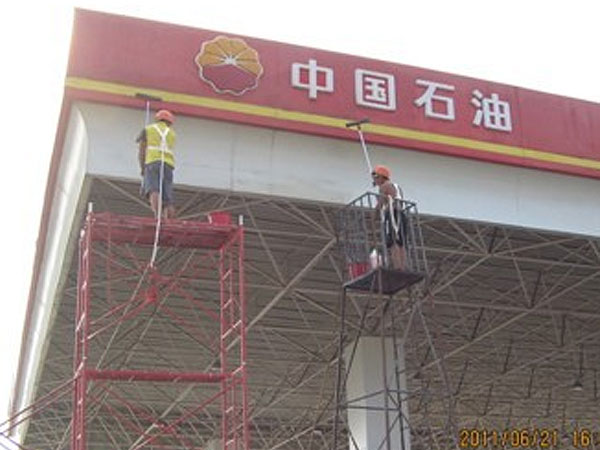 迪邦保潔公司人員正在為“中國石油”做招牌清洗。