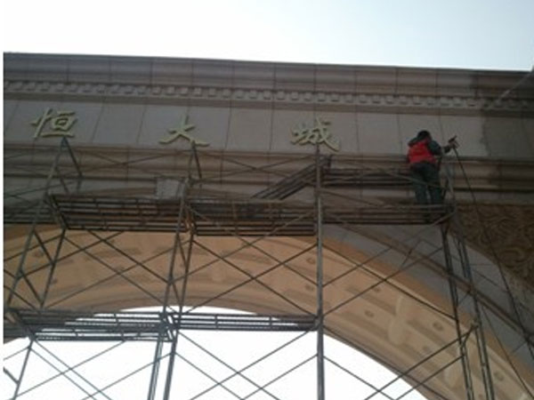 迪邦保潔公司人員正在為“恒大城”做招牌清洗。